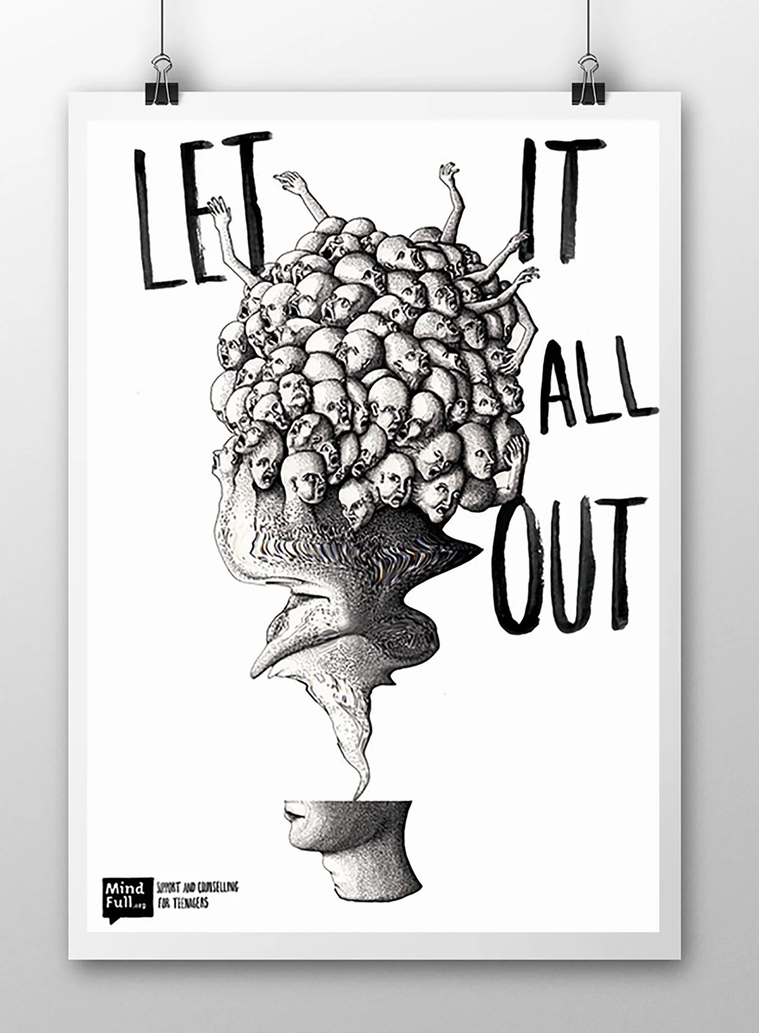 Mindfull is a mental health charity set up to help young people express and understand their emotions in an ever more confusing world. The campaign visualises the overwhelming anxieties that many teenagers have spiralling about their pubescent minds.
